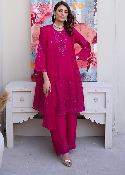 Dive into opulence with Roop by Sufaidposh. This exquisite ensemble, delicately stitched on chiffon fabric, boasts intricate heavy embroidery with enchanting 3D flower work, defining elegance from every angle. Paired with an embroidered chiffon dupatta and a soft fabric trouser, it's a symphony of craftsmanship and style, ensuring you stand out in every detail